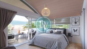 À l’étage (60 m²), la villa propose un espace nuit comprenant trois chambres confortables avec armoires encastrées et deux salle de douche.