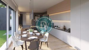 Au rez-de-chaussée (60 m²), un espace de vie convivial intègre un salon-séjour ouvert sur le jardin, une cuisine spacieuse et un coin repas. De larges baies vitrées permettent à la lumière naturelle d’illuminer l’intérieur et de profiter de la nature environnante et du Jura. La hauteur sous plafond est très généreuse.